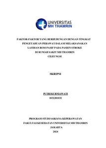 Putri, Kurniawati (2024) Faktor-Faktor yang Berhubungan dengan Tingkat Pengetahuan Perawat dalam Melaksanakan Latihan ROM Pasif pada Pasien Stroke di Rumah Sakit MH Thamrin Cileungsi. Other thesis, Universitas Mohammad Husni Thamrin.