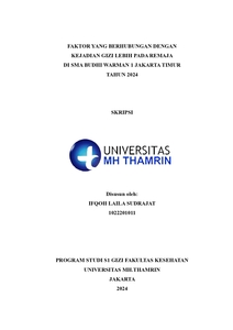 Ifqoh Laila, Sudrajat (2024) FAKTOR YANG BERHUBUNGAN DENGAN KEJADIAN GIZI LEBIH PADA REMAJA DI SMA BUDHI WARMAN 1 JAKARTA TIMUR TAHUN 2024. Other thesis, Universitas Mohammad Husni Thamrin.