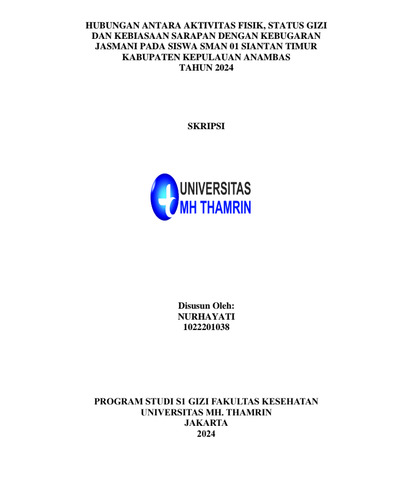 Nurhayati, Nurhayati (2024) HUBUNGAN ANTARA AKTIVITAS FISIK, STATUS GIZI DAN KEBIASAAN SARAPAN DENGAN KEBUGARAN JASMANI PADA SISWA SMAN 01 SIANTAN TIMUR KABUPATEN KEPULAUAN ANAMBAS TAHUN 2024. Other thesis, Universitas Mohammad Husni Thamrin.