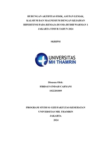 Firdaus Indah, Cahyani (2024) HUBUNGAN AKTIFITAS FISIK, ASUPAN LEMAK, KALSIUM DAN MAGNESIUM DENGAN KEJADIAN HIPERTENSI PADA REMAJA DI SMA BUDHI WARMAN 1 JAKARTA TIMUR TAHUN 2024. Other thesis, Universitas Mohammad Husni Thamrin.