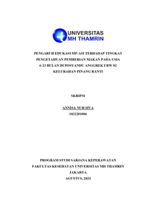 Annisa Nur, Siva (2024) PENGARUH EDUKASI MP-ASI TERHADAP TINGKAT PENGETAHUAN PEMBERIAN MAKAN PADA USIA 6-23 BULAN DI POSYANDU ANGGREK I RW 02 KELURAHAN PINANG RANTI. Other thesis, Universitas Mohammad Husni Thamrin.
