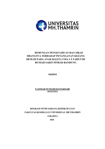 Fatimah Sundari, Banjarsari (2024) Hubungan Pengetahuan dan Sikap Orang Tua terhadap Penanganan Kejang Demam pada Anak Balita Usia 1-5 Tahun di Rumah Sakit Pindad Bandung. Other thesis, Universitas Mohammad Husni Thamrin.
