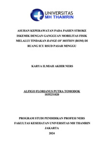 Alfigo Florianus Putra, Tomodok (2024) ASUHAN KEPERAWATAN PADA PASIEN STROKE ISKEMIK DENGAN GANGGUAN MOBILITAS FISIK MELALUI TINDAKAN RANGE OF MOTION (ROM) DI RUANG ICU RSUD PASAR MINGGU. Other thesis, Universitas Mohammad Husni Thamrin.