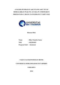 Riky Chandra, Sanny (2024) ANALISIS PENERAPAN AKUNTANSI ASET TETAP BERDASARKAN PSAK NO. 16 PADA PT. INDOMARCO PRISMATAMA CABANG TANGGERANG 2 TAHUN 2022. Other thesis, Universitas Mohammad Husni Thamrin.
