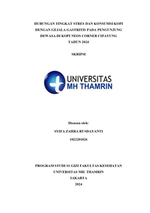 Syifa Zahra, Rusdayanti (2024) HUBUNGAN TINGKAT STRES DAN KONSUMSI KOPI DENGAN GEJALA GASTRITIS PADA PENGUNJUNG DEWASA DI KOPI NEOS CORNER CIPAYUNG TAHUN 2024. Masters thesis, Universitas Mohammad Husni Thamrin.